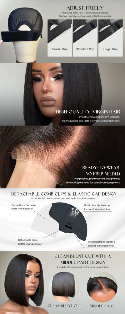 Adjustable Cap Virgin Hair Bob HD Lace Wig