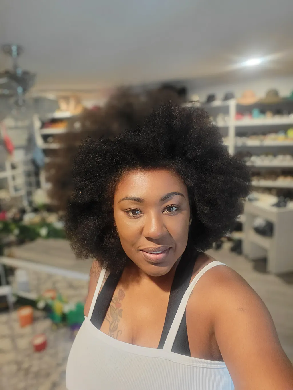 I love this hair. It really, really looks like my hair. This is truly 4b/4c hair. I have styled this hair in a two strand twist-out. This is the 14 inch wig; however I’m 5’9 so consider that in the length. The hair is soft and beautiful. But you must treat this hair with respect. Use high moisture shampoo and conditioners made especially for curly hair. This is the best natural hair wig I have EVER owned!