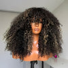 Blonde Highlight Glueless Curly Human Hair Wigs With Bangs