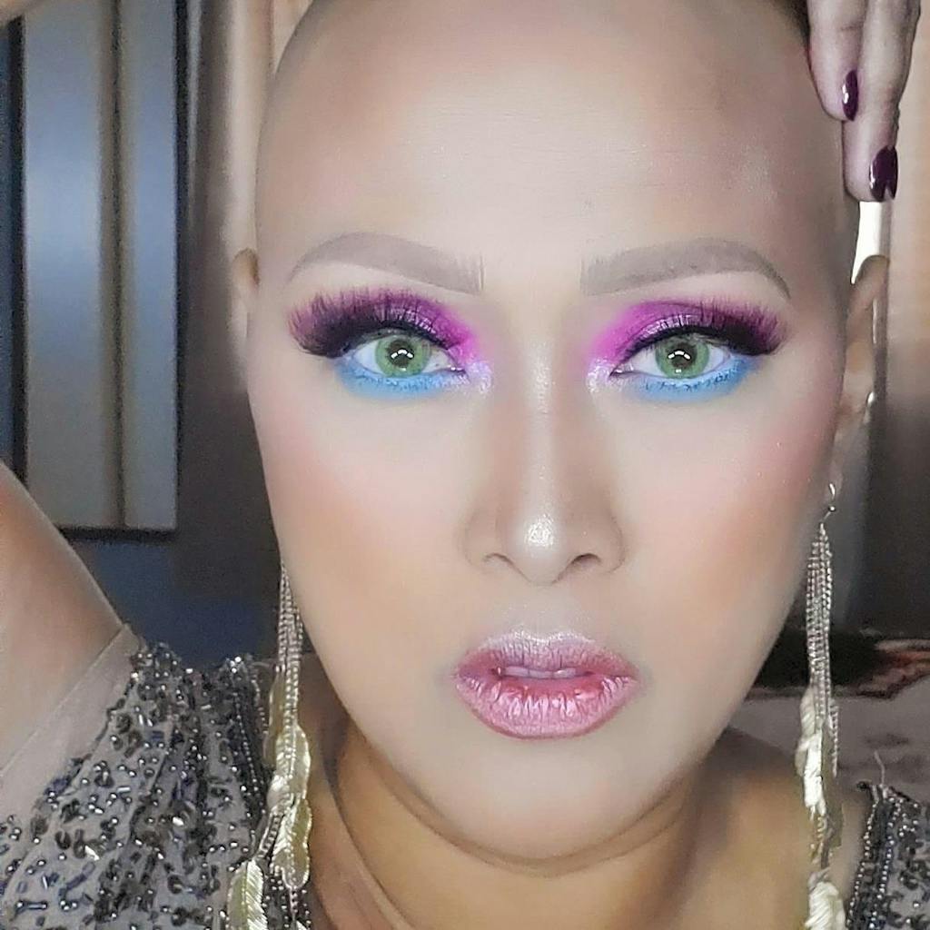 2.Brush short hair back or pin up long hair evenly; a wig cap helps.