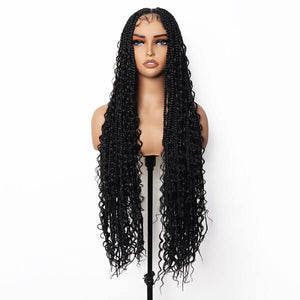 Full Lace Knotless Boho Curls Braided Invisi Drawstring Wig