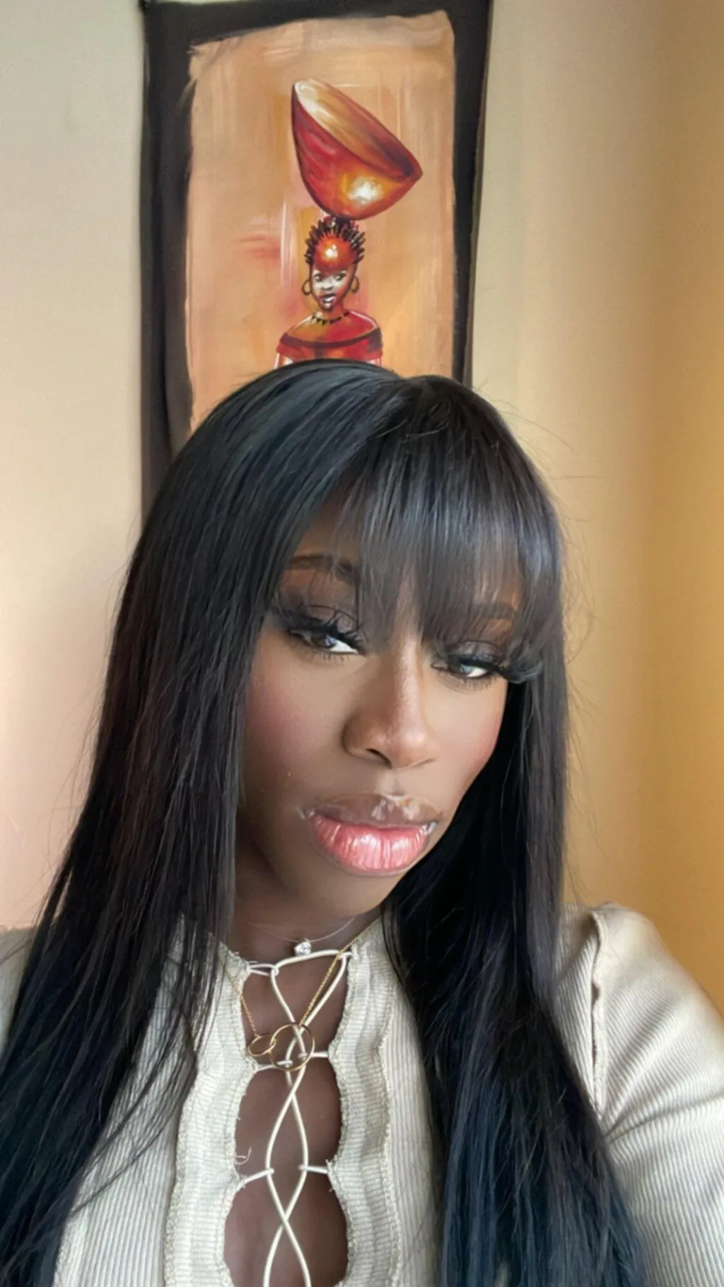A: Your head size & neck length are different from our mannequin, which could make the length of the wig appear different from the length of the wig as shown in the photos.