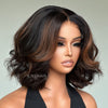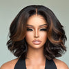 Mix Brown Highlights Layered Cut Wavy Bob Lace Wig