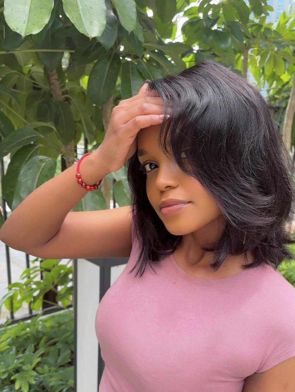Natural Black Layered Fluffy Bob 5x5 Lace Closure Wig