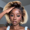 Ombre 613 Blonde Bob With Black Root 13x4 Lace Front Wig