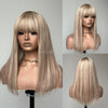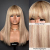 P10/613 Blonde Highlight Straight Glueless Human Hair Wig With Bangs