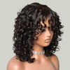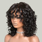 Put on & Go Natural Color Bouncy Curly With Bang 5x5 Lace Wig